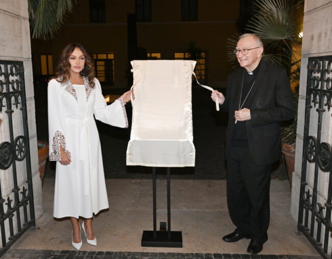 AZƏRTAC xəbər verir ki, Azərbaycan Respublikasının Birinci vitse-prezidenti Mehriban Əliyeva və Vatikanın dövlət katibi kardinal Pietro Parolin tədbirdə iştirak ediblər.