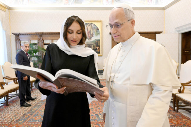 Azərbaycan Respublikasının Birinci vitse-prezidenti Mehriban Əliyeva Müqəddəs Taxt-Taca – Vatikana rəsmi səfəri çərçivəsində oktyabrın 17-də Roma Papası XIV Leo ilə görüşüb.
