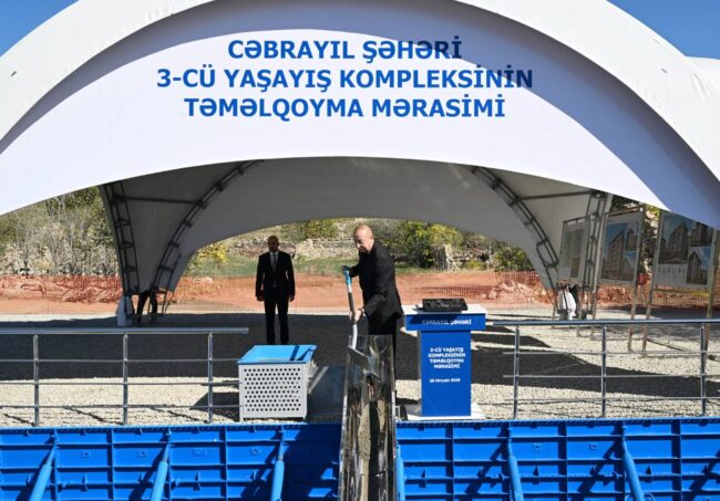 Azərbaycan Respublikasının Prezidenti İlham Əliyev oktyabrın 28-də Cəbrayıl şəhərində ikinci və üçüncü yaşayış komplekslərinin təməlini qoyub.