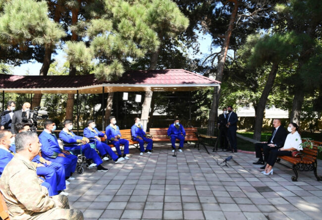 • Azərbaycan Prezidenti, Silahlı Qüvvələrin Ali Baş Komandanı İlham Əliyev və birinci xanım Mehriban Əliyeva Ermənistanın hərbi təxribatı zamanı yaralanan və Müdafiə Nazirliyinin Mərkəzi Hərbi Klinik Hospitalında müalicə olunan hərbçilərlə görüşüb.